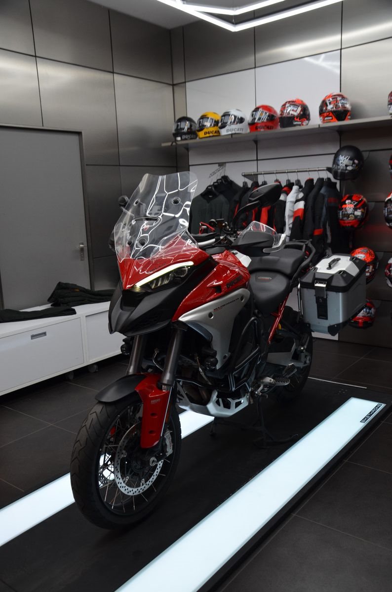 Die Ducati Multistrada V4 Rally ist ein faszinierendes Reisemotorrad. Sie fühlt sich bei sportlicher Fahrweise ebenso wohl wie bei gemütlicher Fahrt über Schotterpisten. Bei Onroad-Tests überzeugt sie mit ihrer Performance und luxuriösen Ausstattung. Abseits der befestigten Wege konnte sie trotz ihrer Ausmaße Profis wie Amateure durch ihre Vielseitigkeit begeistern. Sie deckt einen breiten Einsatzbereich ab und ist mit den hochwertigsten Zutaten ausgestattet. Ein außergewöhnliches Motorrad! Nur leisten muss man sie sich können.